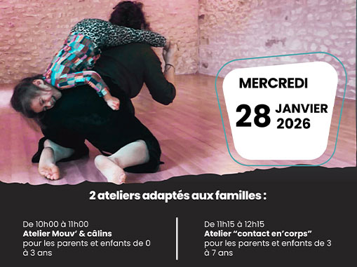 Les ateliers "Contact En-corps et En famille" sont un moment pour se retrouver autrement, pour jouer, danser et créer ensemble à travers le corps en mouvement.