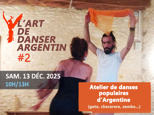 Cet atelier vise à faire découvrir et transmettre le langage des danses populaires et folkloriques d'Argentine, tout en ouvrant le champ à d'autres expressions traditionnelles issues des pays d'Amérique latine.