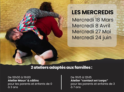 > 11h15/12h15, atelier Contact en'corps pour les parents et enfants de 3 à 7 ans