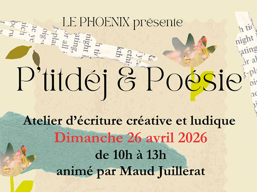 Retrouvez Maud JUILLERAT pour ce prochain atelier d’écriture dominical.